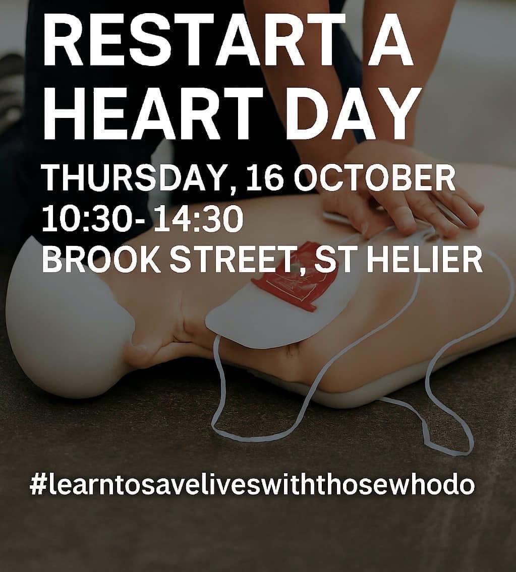 💥🚑 Restart a Heart Day is coming to Brook Street! We are pleased to announce we are supporting the Resuscitation Council UK Restart a Heart Day in the middle of St Helier! Join us on Thursday 16 October, 10:30–14:30 for free CPR and AED training with the professionals who do it for real. We will have ourselves, Normandy Rescue (with an ambulance if you want to have a look around and have a chat about what they do), Independent Training and Medical Supplies and the Jersey Heart Support Group. All to show you in 5 minutes, how to save a life. No booking. No pressure. Just life-saving skills, taught by those who’ve saved lives. 📍 Brook Street, St Helier 🕥 Drop in anytime 🔖 #learntosaveliveswiththosewhodo #Jerseyci Let’s turn bystanders into lifesavers 💚